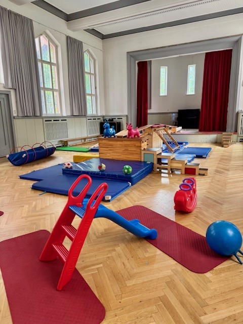 Eine Besonderheit ist die über 180 m² große Mehrzweckhalle. Sie bietet Platz und Möglichkeiten Eltern- Kind – Bewegungsangebote, Babykonzerte oder Flohmärkte. An einigen Vormittagen nutzen Kitas die Halle für ihr Kinderturnen.