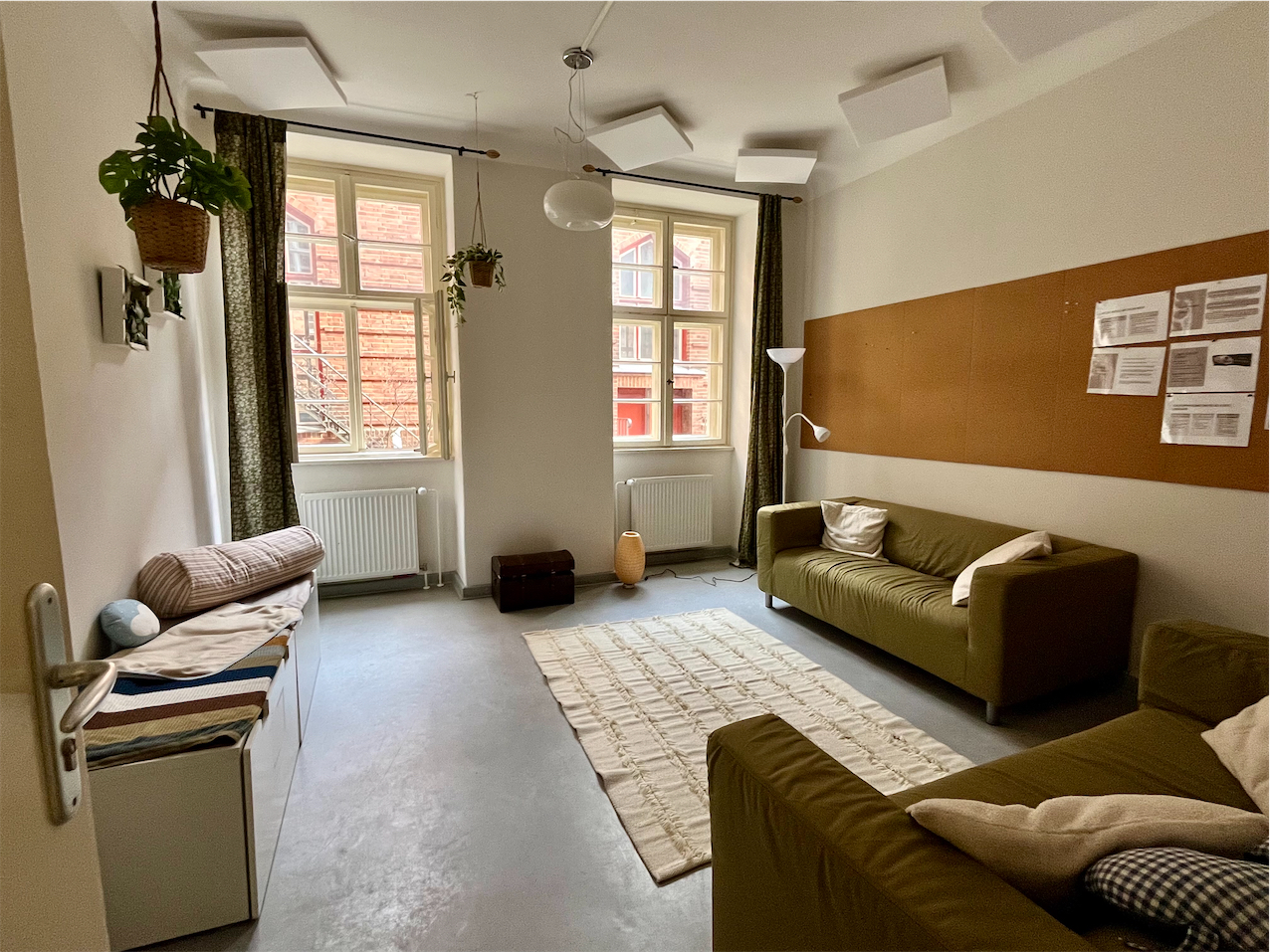 Die multifunktional und gemütlich gestalteten Räume des Familienzentrums befinden sich auf über 850 m² im Erdgeschoss der Adalbertstraße 23b.